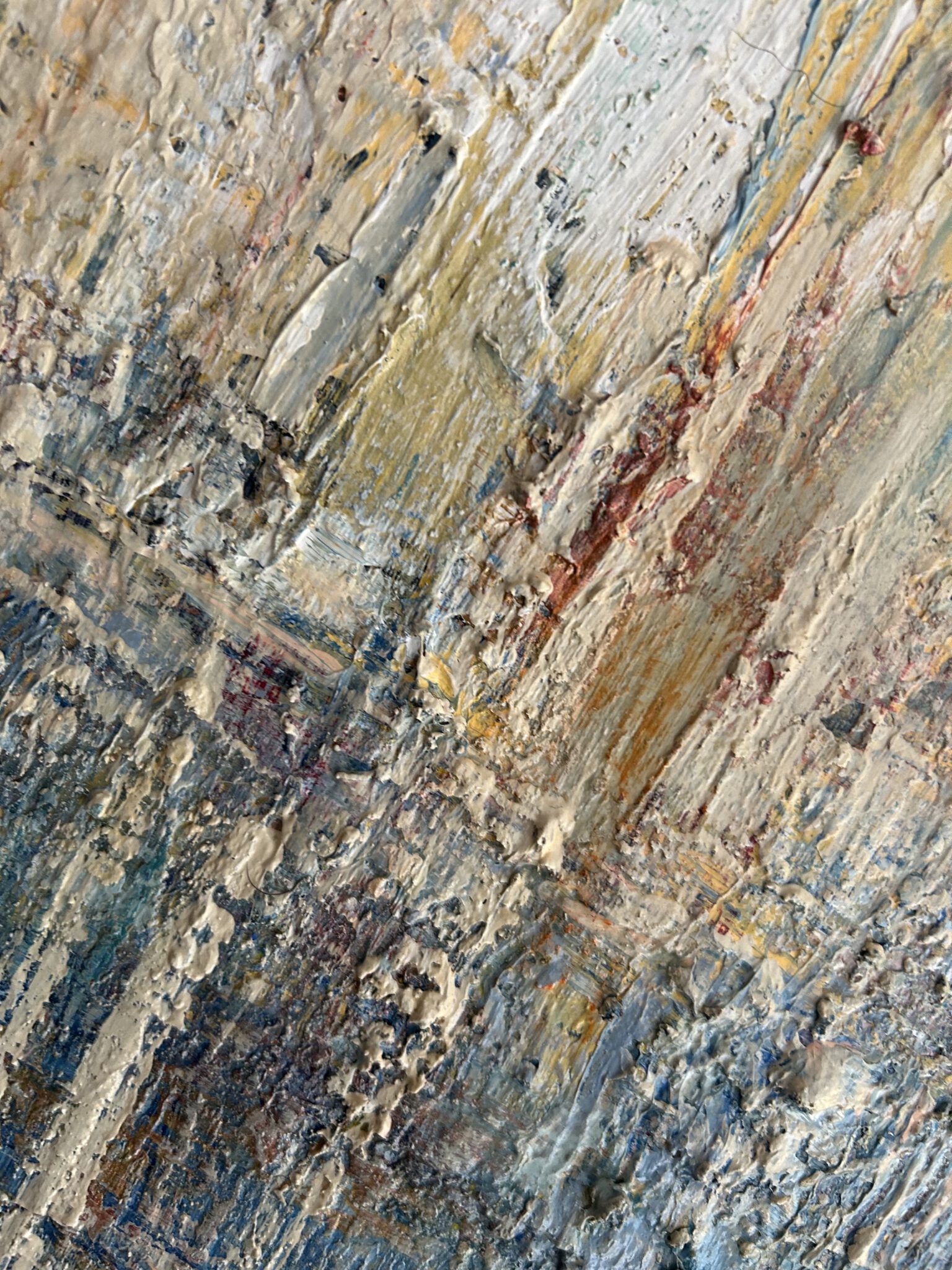 Ihre Malerei ist ein lebendiger Dialog zwischen Form und Auflösung, zwischen Fläche und Atmosphäre, zwischen Spuren von Erinnerung und visionärem Aufbruch. Sie ist Ausdruck eines künstlerischen Denkens, das sich ganz dem Prozess verschreibt – dem Sichtbarmachen innerer Zustände, der Erforschung von Wahrnehmung-